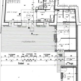 - d'un second volume ouvert sur le jardin et traité avec un toit terrasse pour l'agrandissement du séjour et de la chambre ;