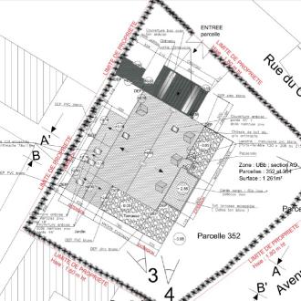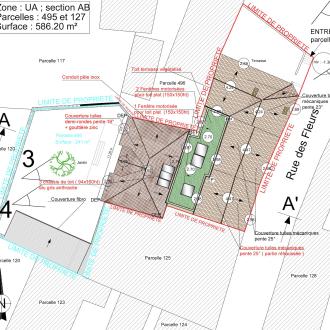 - d'un volume simple en toit terrasse sur le pignon Sud Ouest pour la création d'un garage et la reformulation d'une entrée ;
