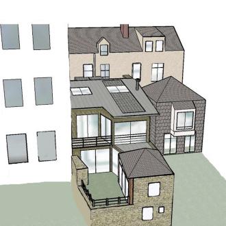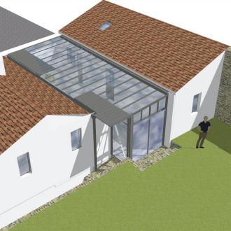 le projet consiste en la création d’une petite extension en verrière (type véranda) dans la continuité du bâti existant. Ce nouveau volume plus petit et plus bas que celui sur lequel il s’adosse viendra s’imbriquer côté cour dans la toiture de la maison donnant sur la rue.