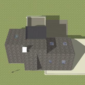 On modifiera à l'étage la lucarne existante pour l'agrandir et lui donner un aspect contemporain, panoramique à toit plat.